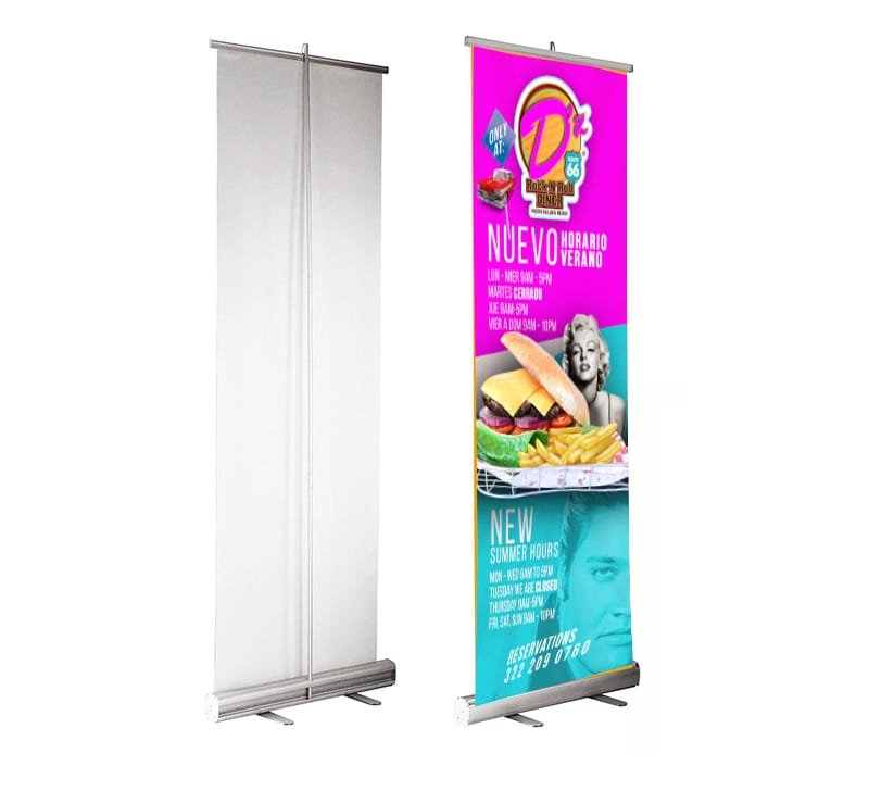 Professzionális Roll-up, Banner Nyomtatás és Kétoldalas LED-es világítódoboz textilgrafikával Cégeknek, Rendezvényekre